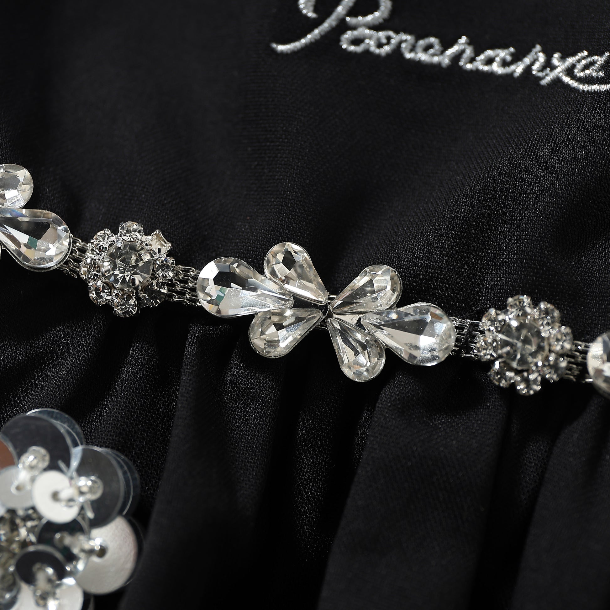 It features handcrafted beadwork and imported machine embroidery for exquisite detailing.