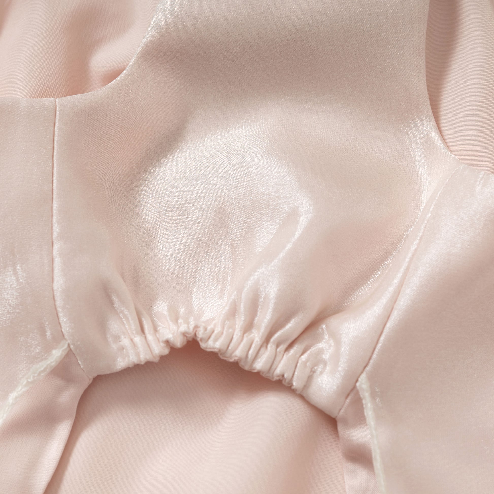 Crafted from lightweight, cooling sheer fabric with a shimmering finish, it creates an elegant and luxurious look.