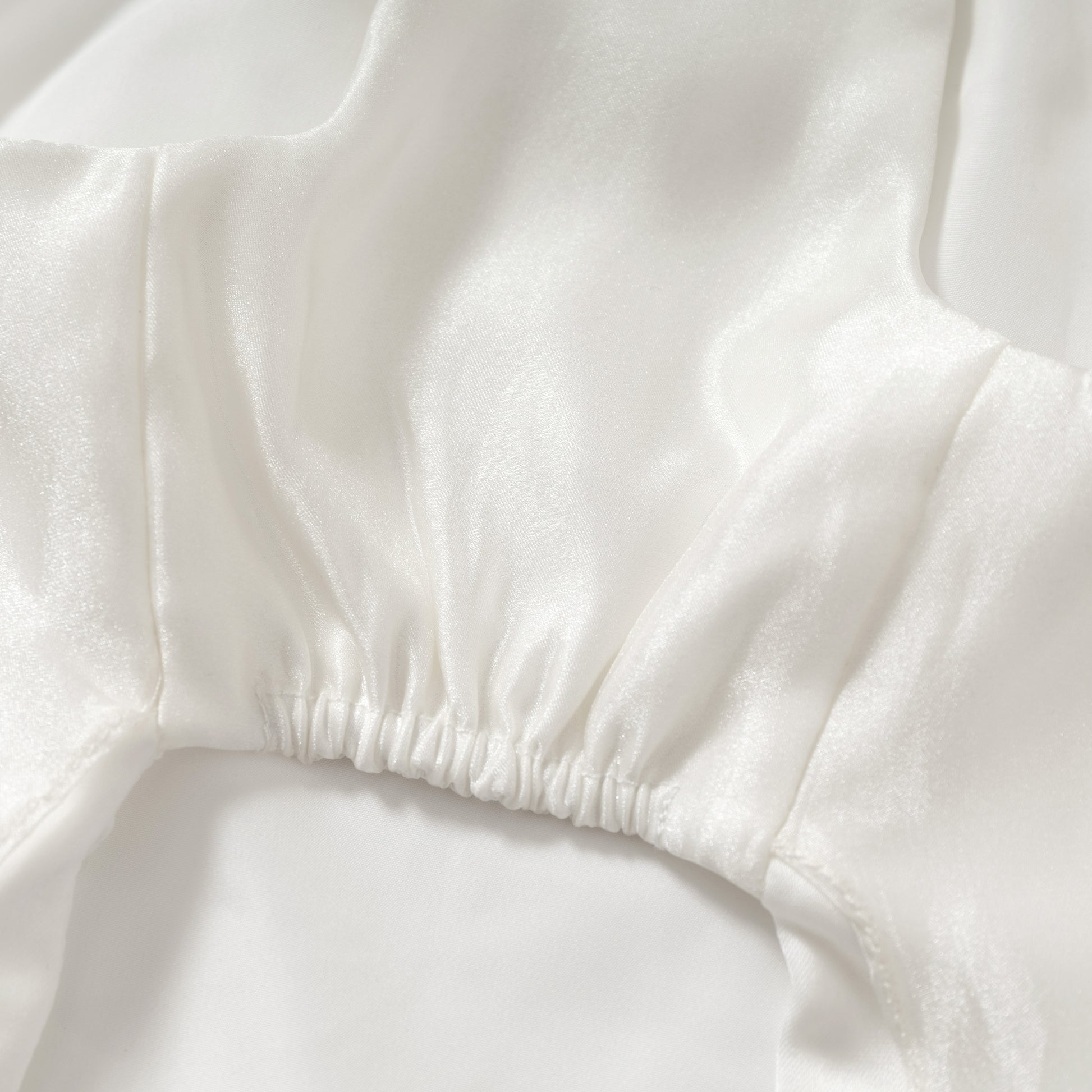 Crafted from lightweight, cooling sheer fabric with a shimmering finish, it creates an elegant and luxurious look.